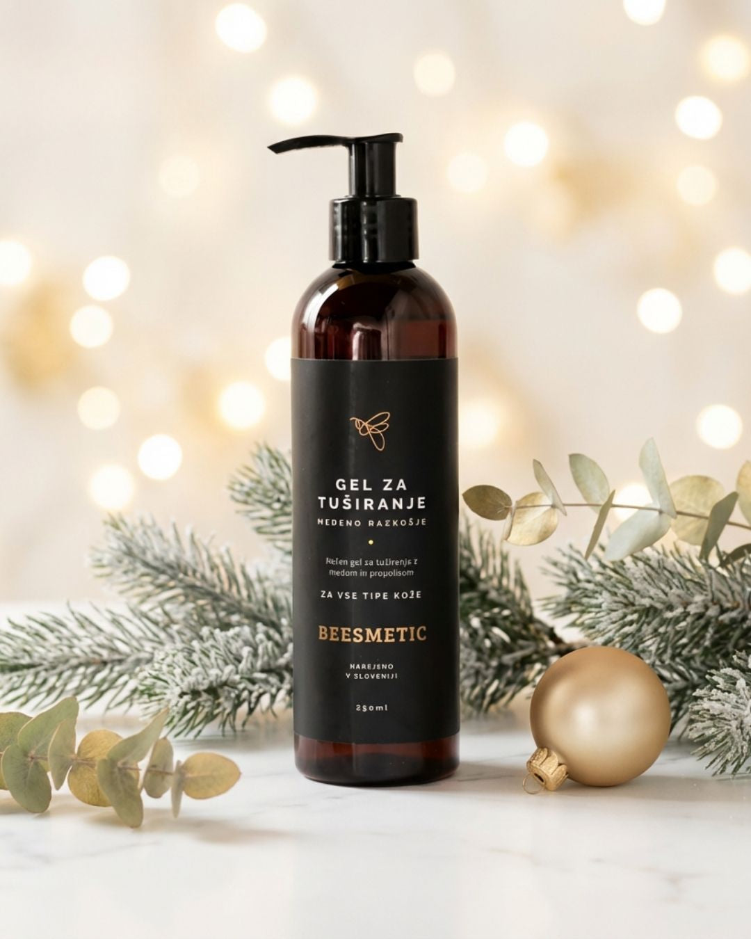 Medeno Razkošje je naravni gel za tuširanje z izvlečkom slovenskega medu in propolisa, ki vašo kožo nežno očisti in globinsko navlaži. Občutite bogato nego, svežo cvetlično dišavo in gladkost kože po vsakem tuširanju. Gel je primeren tudi za občutljivo kožo in kožo, nagnjeno k srbečici.